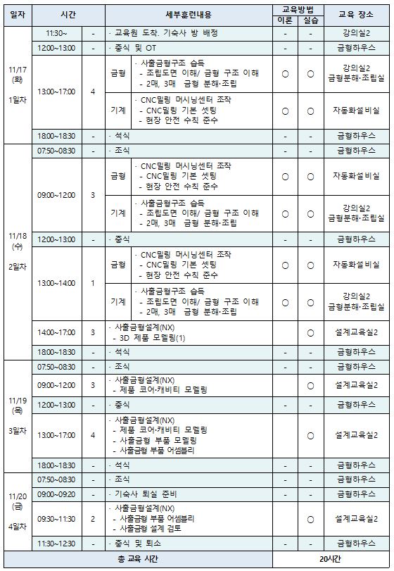 | 교육장소 | 한국금형공업협동조합 설계교육실2, 강의실, 금형분해조립실 |