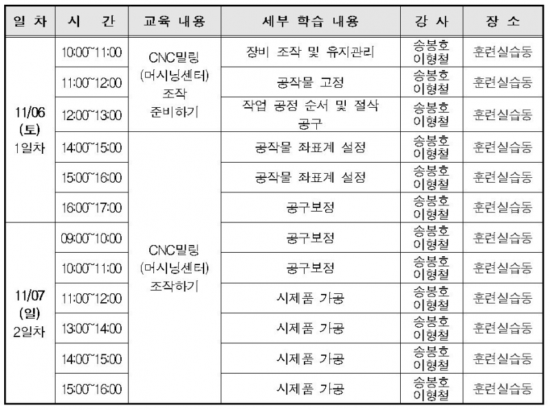 | 교육장소 | 한국금형기술교육원 훈련실습동 |